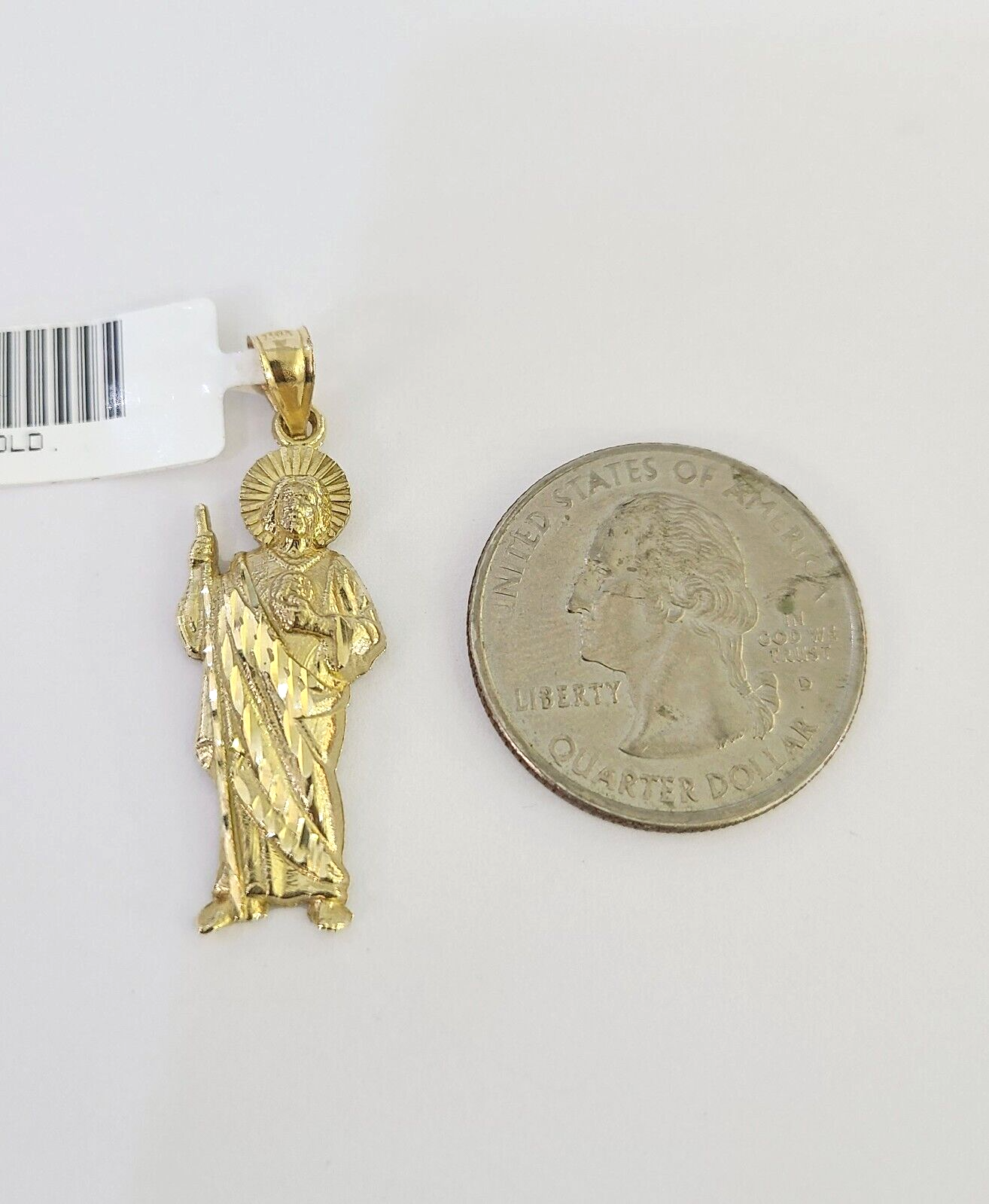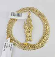10k Solid Gold Cuban Curb Chain Saint Jude Pendant 2mm 18"-24" SET Necklace