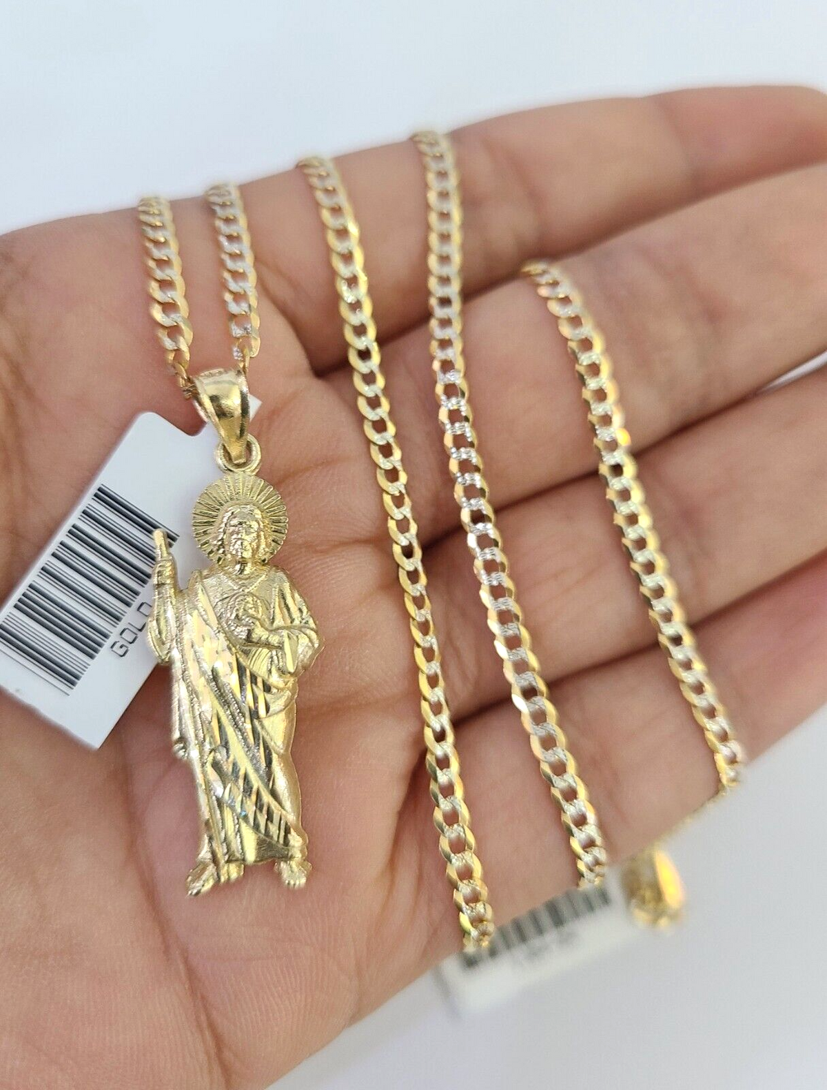 10k Solid Gold Cuban Curb Chain Saint Jude Pendant 2mm 18"-24" SET Nec – Goldenlinq index