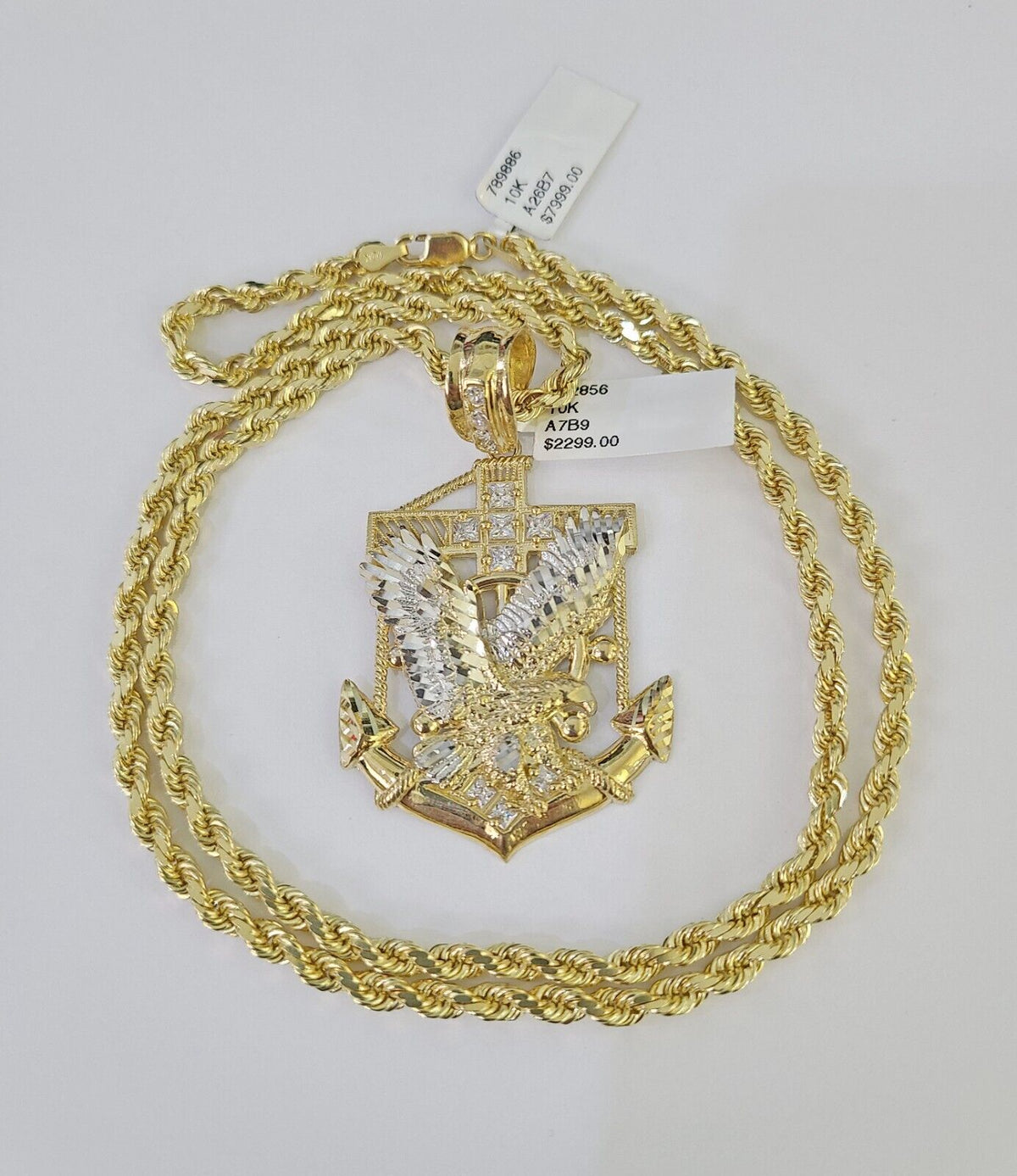 10k Solid Rope Chain Eagle Anchor Charm Set 4mm 20"-28" Necklace Gold Yellow - 20" Chain with Charm