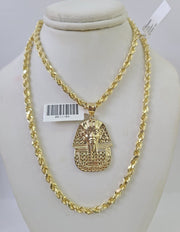 10k Solid Rope Chain Pharaoh Charm Set 4mm 20"-28" Necklace Gold Yellow
