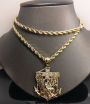 10k Yellow Gold American Eagle Anchor Rope Charm 26" Chain 10k