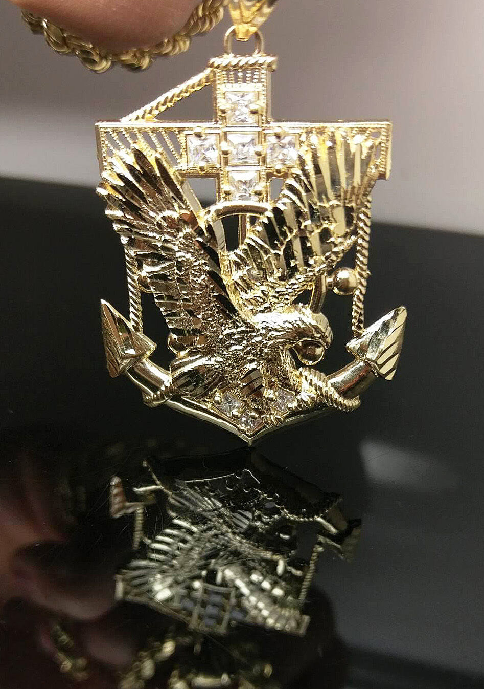 10k Yellow Gold American Eagle Anchor Rope Charm 26" Chain 10k – Goldenlinq index