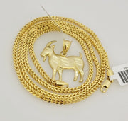Real 10k Gold Chain Pendant SET Franco Necklace GOAT Charm 2.5mm 18"-24 Inch - 20 Inch