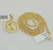 Real 10k Gold Chain Pendant SET World Is Your Charm Rope Necklace 3mm 24 Inch