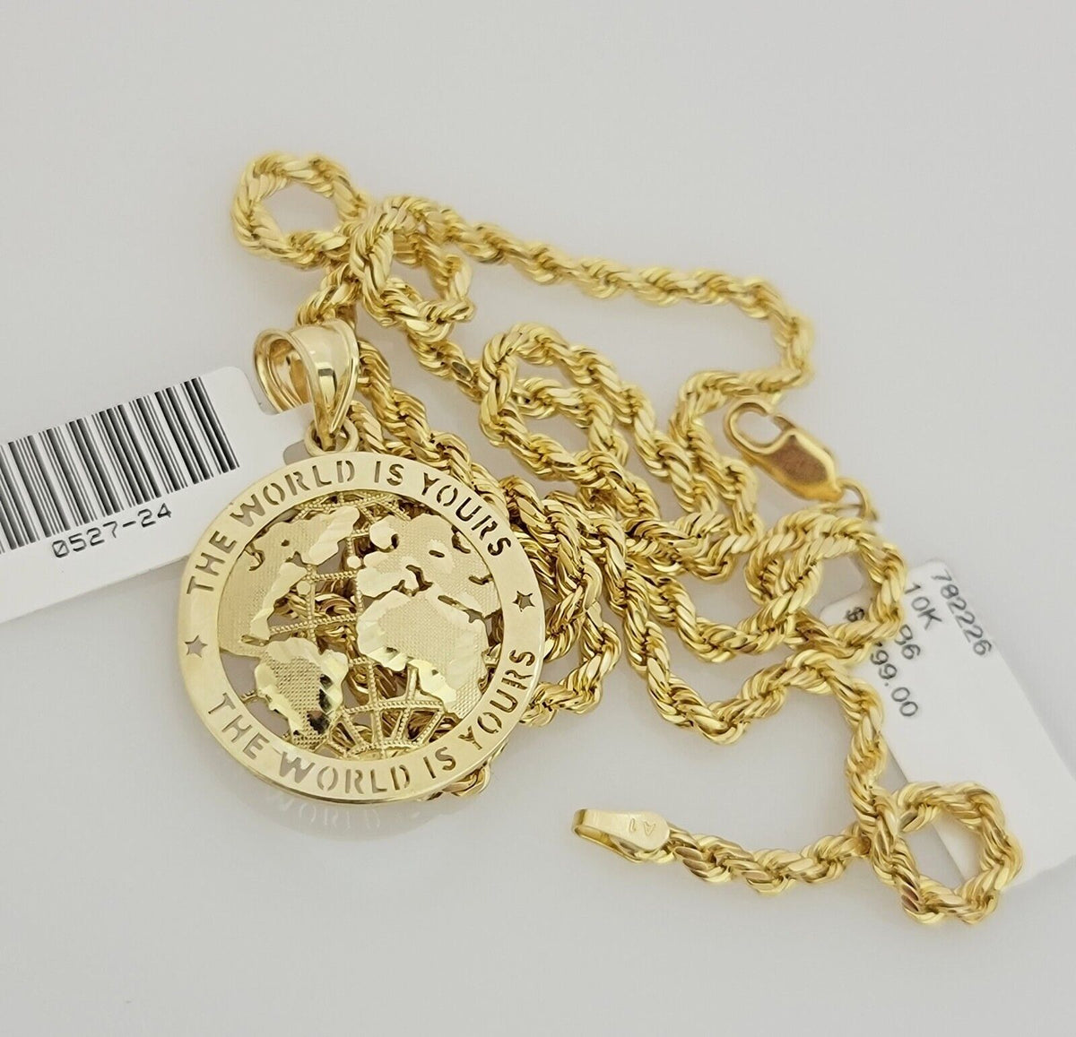 Real 10k Gold Chain Pendant SET World Is Your Charm Rope Necklace 3mm – Goldenlinq index