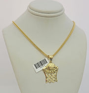 Real 10k Gold Franco Chain Basketball Charm pendant Set 2.5mm Necklace 22 Inch