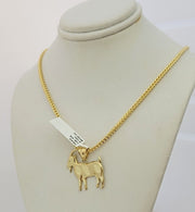 Real 10k Gold Franco Chain GOAT Charm pendant Set 2.5mm Necklace 22 Inch Men's