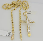 Real 10k Gold Rope Chain Pendant SET Solid Necklace 4mm 20-28" Stone Cross Charm - 20 Inch