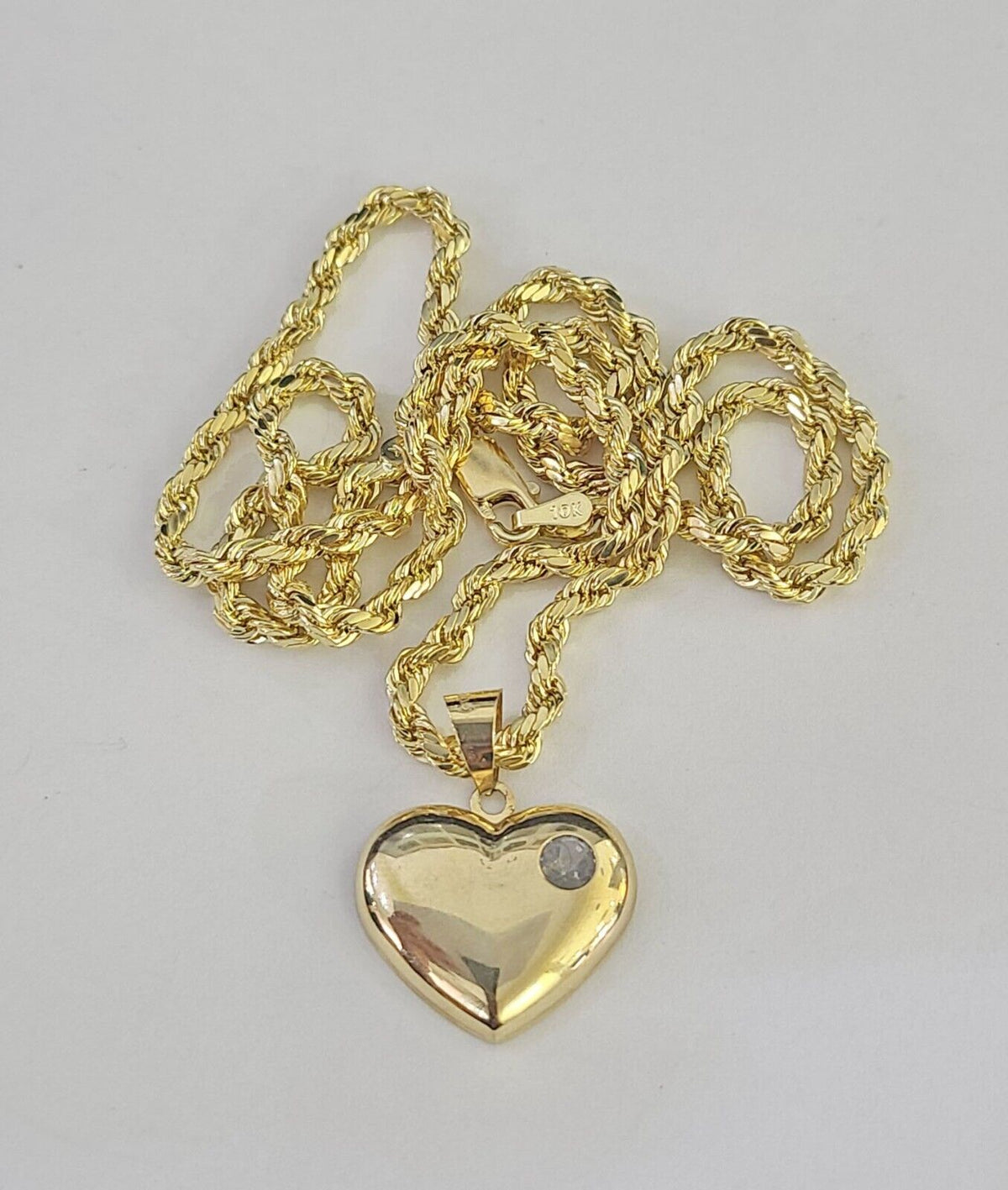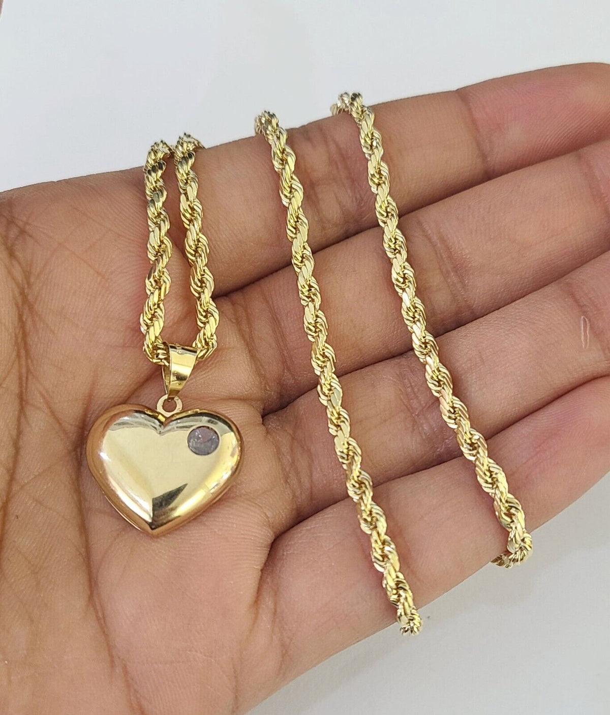 Real 10k Rope Chain Heart Charm Pendant SET Necklace 3mm 18"-24" Ladie – Goldenlinq index