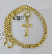 Real 10k Rope Chain Jesus Cross Charm Necklace SET 3mm 18"-28" Pendant - 24 Inches