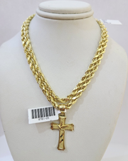Real 10k Rope Chain Jesus Cross Charm Necklace SET 4mm 18"-28" Pendant