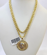 Real 10k Rope Chain Jesus Head Charm Necklace SET 3mm 18"-28" Pendant - 24 Inches