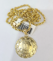 Real 10k Rope Chain Virgin Mary Charm Necklace SET 2mm 18"-28" end Pendant