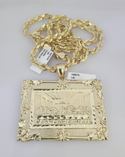 Real 10k Solid Rope Chain Last Supper Charm Set 6mm 20"-30" Inch Necklace Gold - 20" Chain with Charm