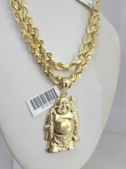 Real 10k Solid Rope Chain Laughing Buddha Charm Set 6mm 20"-30" Necklace Gold - 20" Chain with Charm