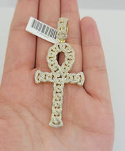 Real Diamond Ankh Cross Charm Pendant 10k Yellow Gold men's 1 CT Natural Daimond
