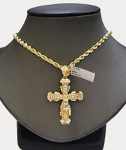 Real 10k Gold Chain Charm Set Jesus Cross Pendant Rope Necklace 5mm 18"-28" Mens - 18 Inch