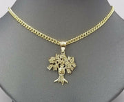 REAL 10k Gold Chain Pendant Set Miami Cuban chain 3mm& Money Tree Charm, 18"-28"