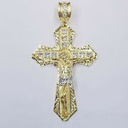 10k Yellow Gold Cross Charm pendant 3.75" Inch With Cubic Zirconia
