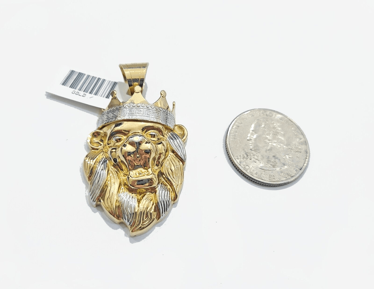 Real 10k Yellow Gold Lion Head Crown Charm Pendant 10kt for Chain – Goldenlinq index