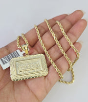 REAL 10k Rope Chain 3mm Last Supper Charm Pendant Necklace Set 18"-30" in