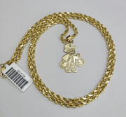REAL 10k Rope Chain Grandpa Money Bag Charm Pendant 3mm Necklace Set 18"-28" in - 18 Inch (Short Length)