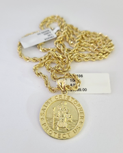 REAL 10k Rope Chain Saint Christopher Charm Pendant 3mm Necklace Set 18"-30" in - 18 Inch (Short Length)