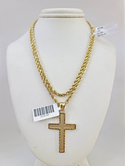 REAL 10k Solid Rope Chain Jesus Cross Charm Pendant 3mm Set 18"-26" in Necklace - 18 Inch (Short Length)