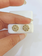 10k Yellow gold Flower Earrings with Real 0.96CT diamond screw-bag ,Women studs