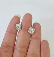 14k White gold Square Earrings Diamond screw-back Lab Created Women Men Studs