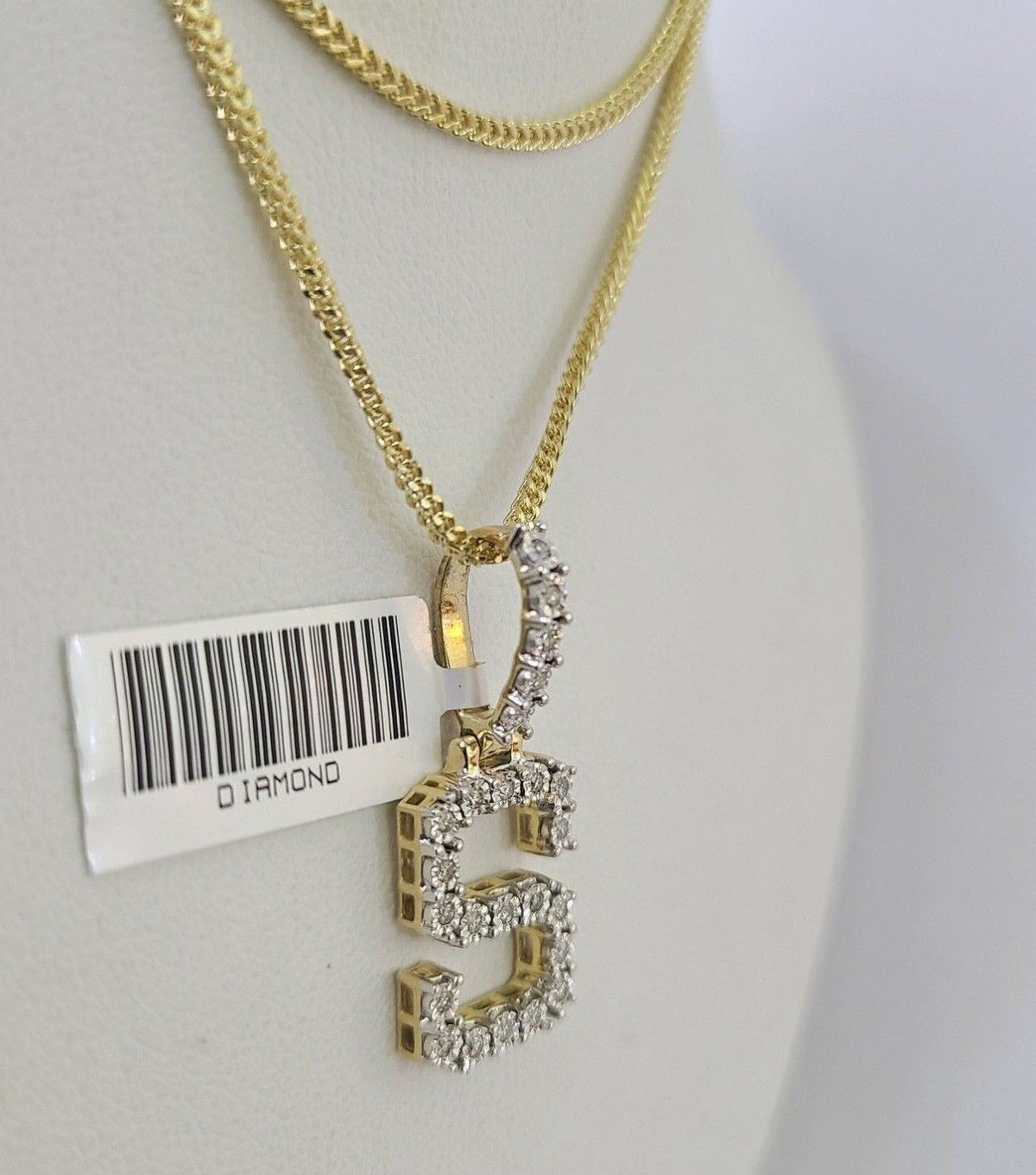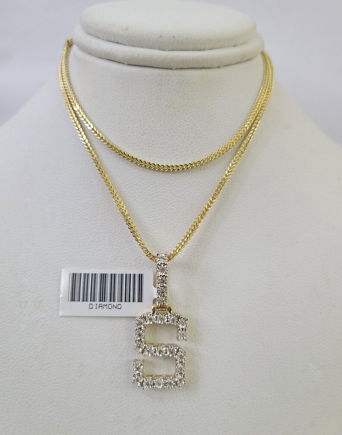10K Franco Chain Diamond S Pendant Initial Charm Letter Necklace 18"-24" 1.5mm - 18" chain with charm
