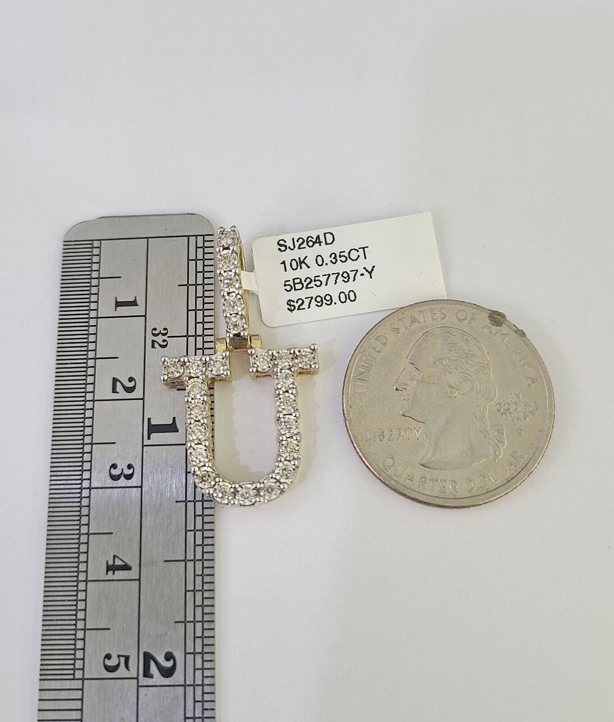 10K Franco Chain Diamond U Pendant Initial Charm Letter Necklace 18"-24" 1.5mm - 18" chain with charm