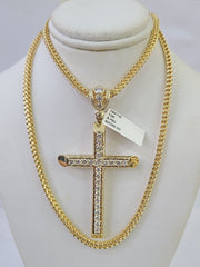 10K Franco Chain Jesus Cross Pendant Charm Necklace 20"-26" 3mm Gold - 20" chain with charm