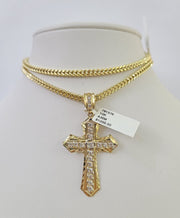10K Franco Chain Jesus Cross Pendant Charm Necklace 20"-26" 3mm Gold Yellow SET