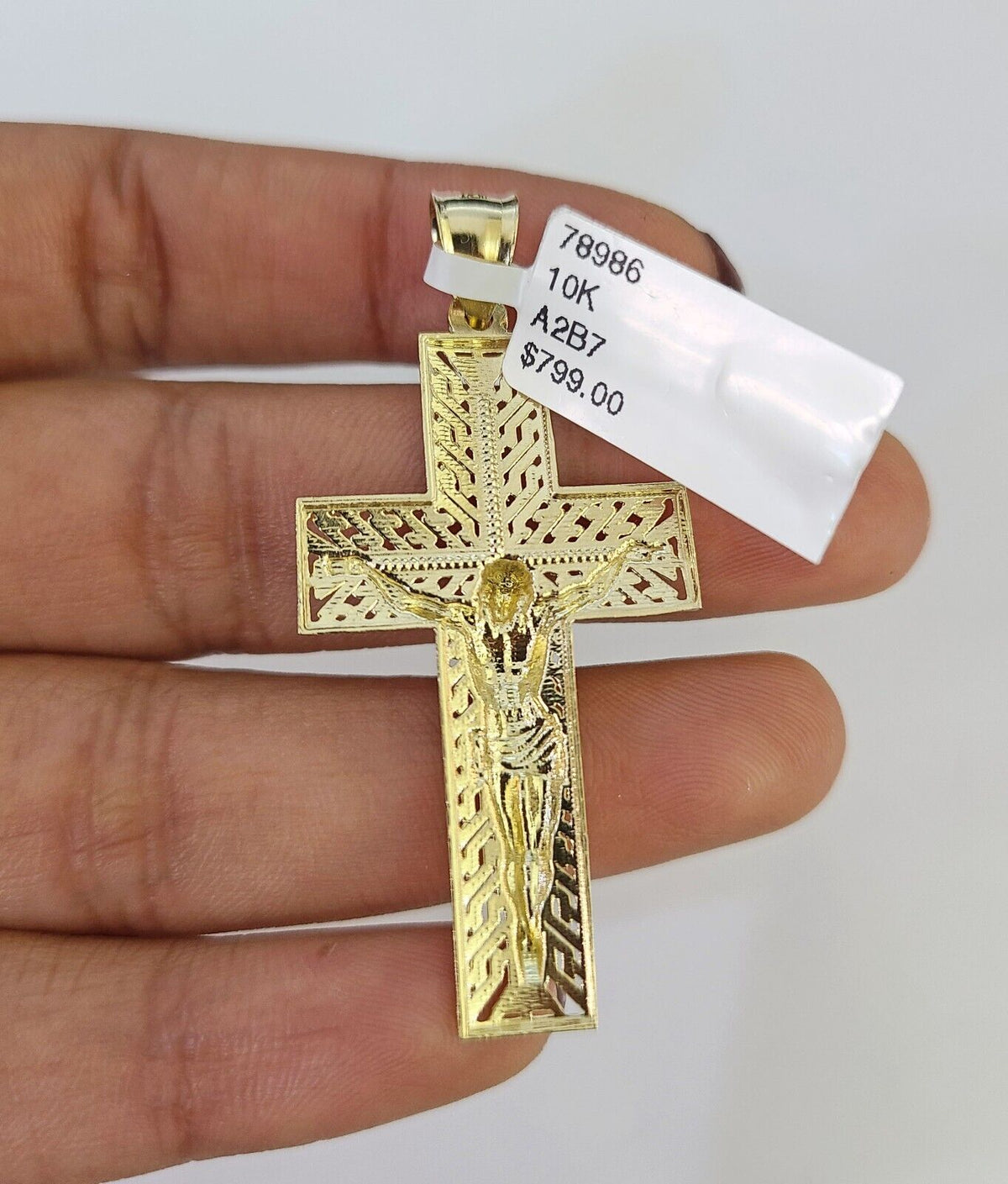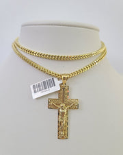 10K Franco Chain Jesus Cross Pendant Charm Necklace 20"-26" 3mm Gold Yellow SET