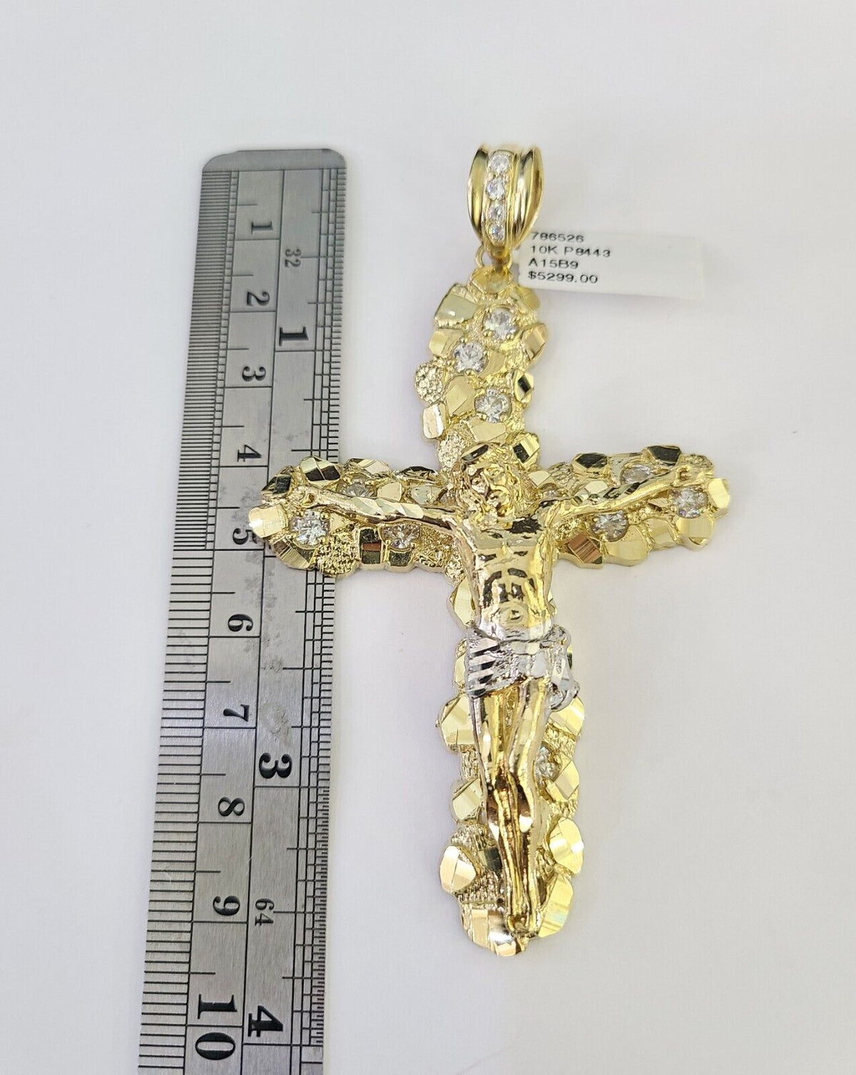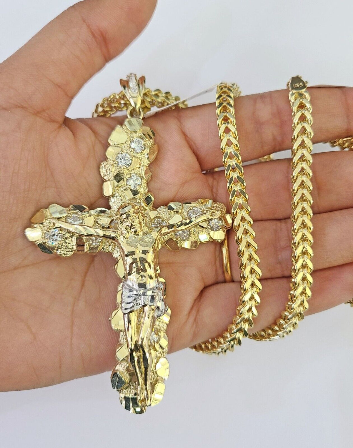 10K Franco Chain Jesus Cross Pendant Charm Necklace 20"-26" 5mm Gold Yellow SET - 20" chain with charm