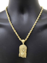 10k Gold Jesus Head Charm Rope Chain Necklace 6mm 28'' Set & Pendant 1 – Goldenlinq index
