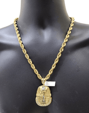 10k Gold Pharaoh Head Charm Rope Chain Necklace 8mm 28'' Set & Pendant – Goldenlinq index
