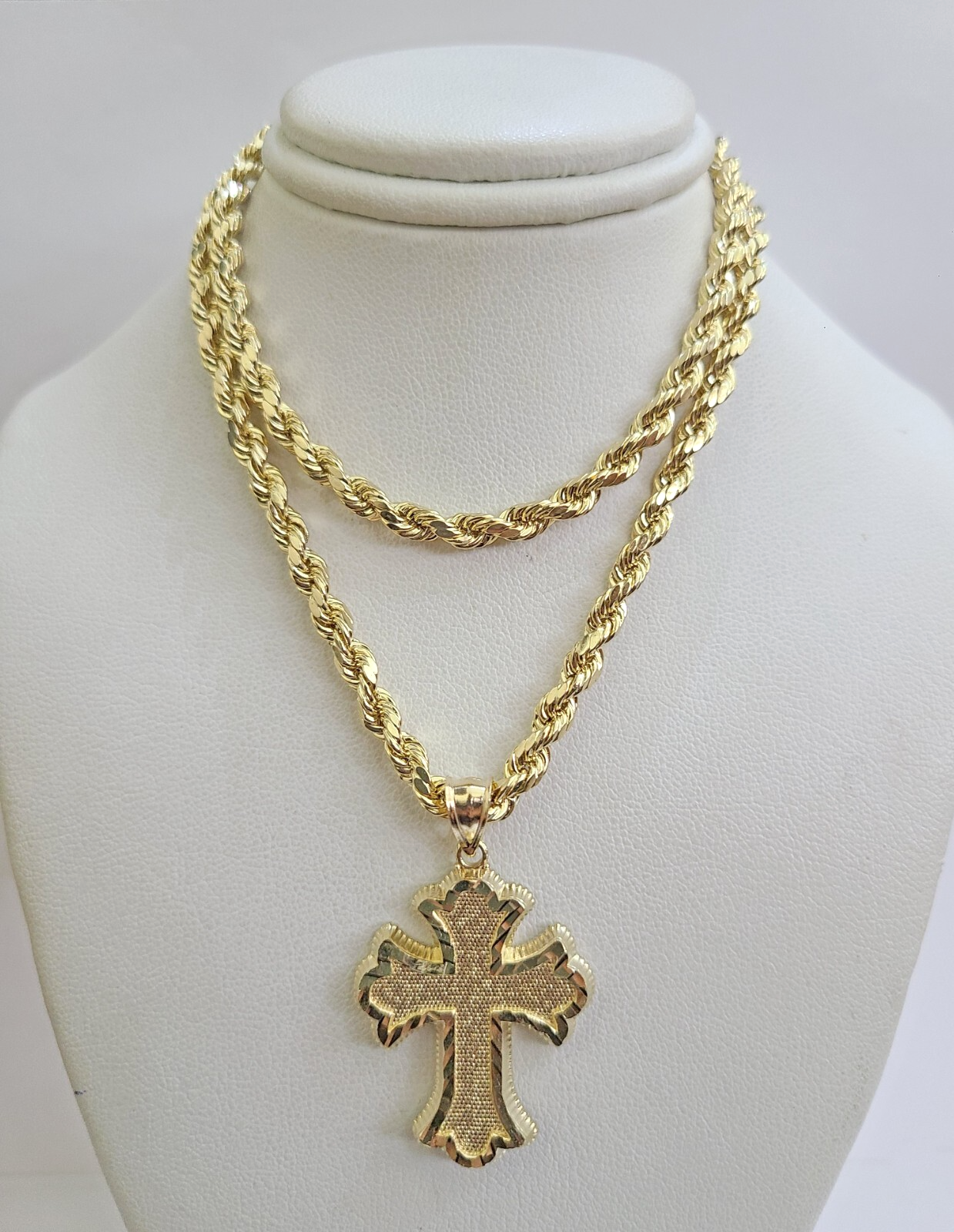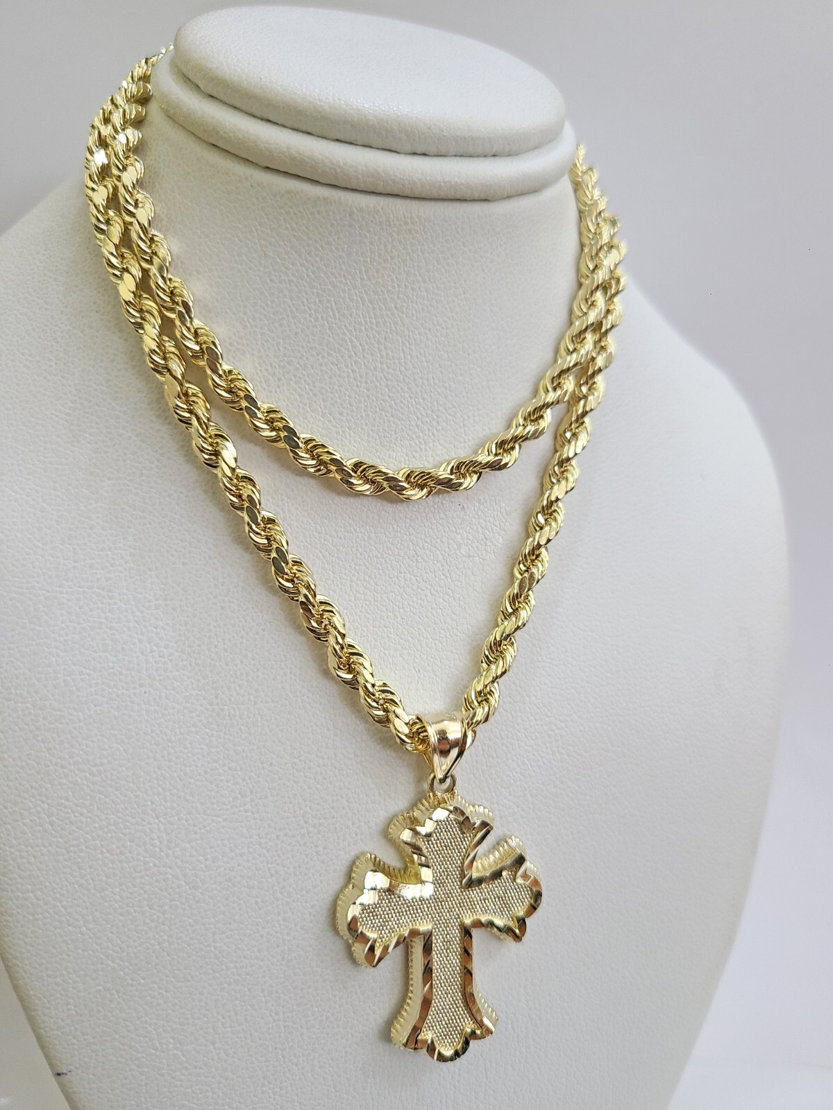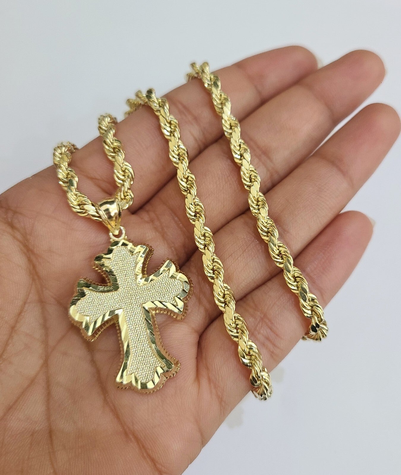 REAL 10k Jesus Cross Charm Rope Chain Pendant 4mm Necklace Set 18"-28" in - 18 Inch (Short Length)