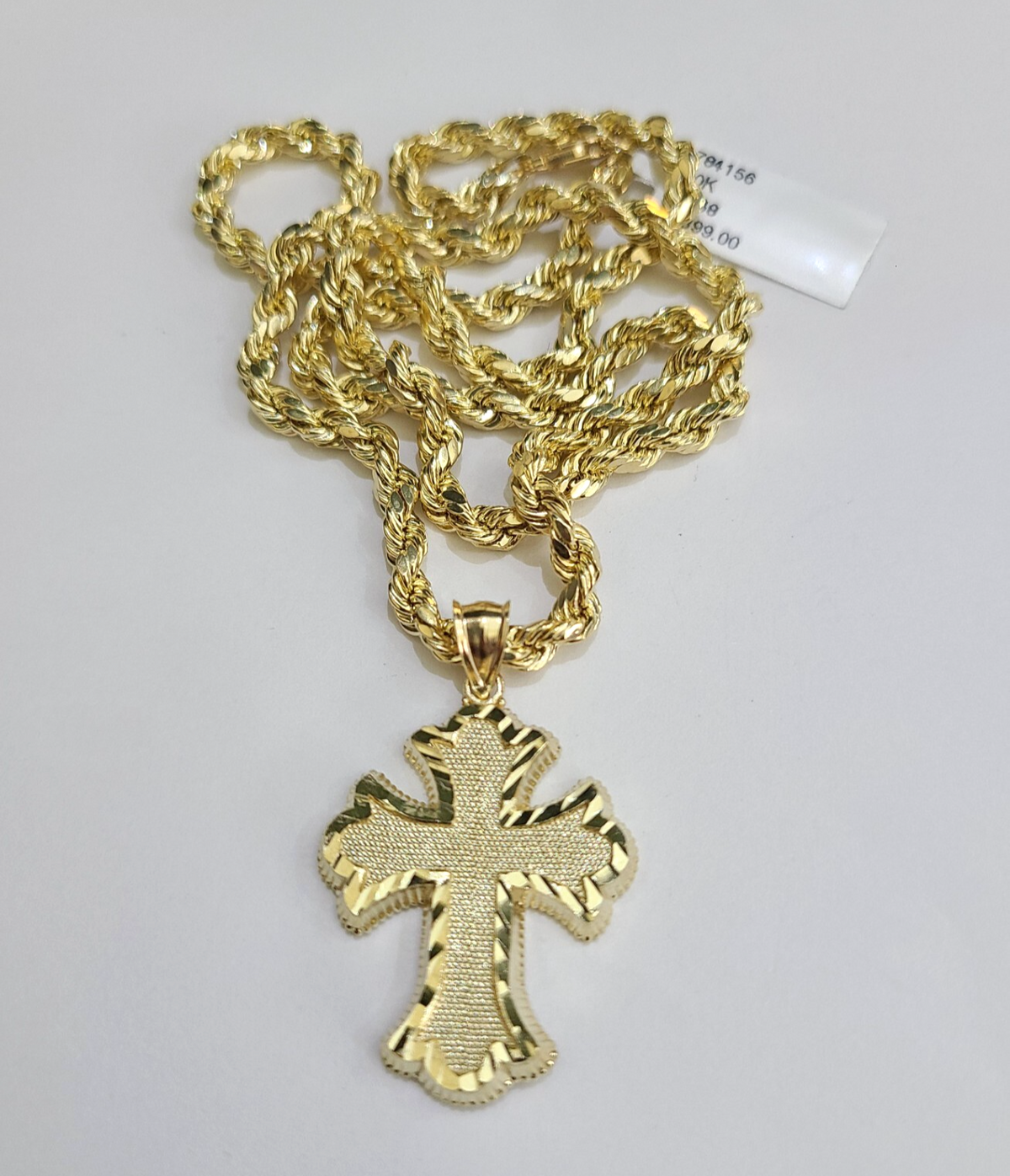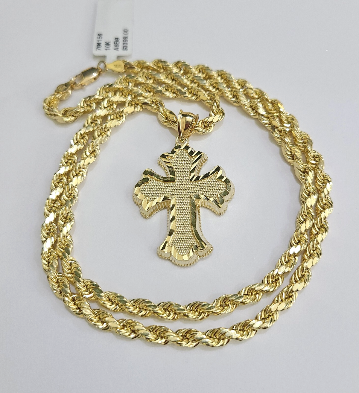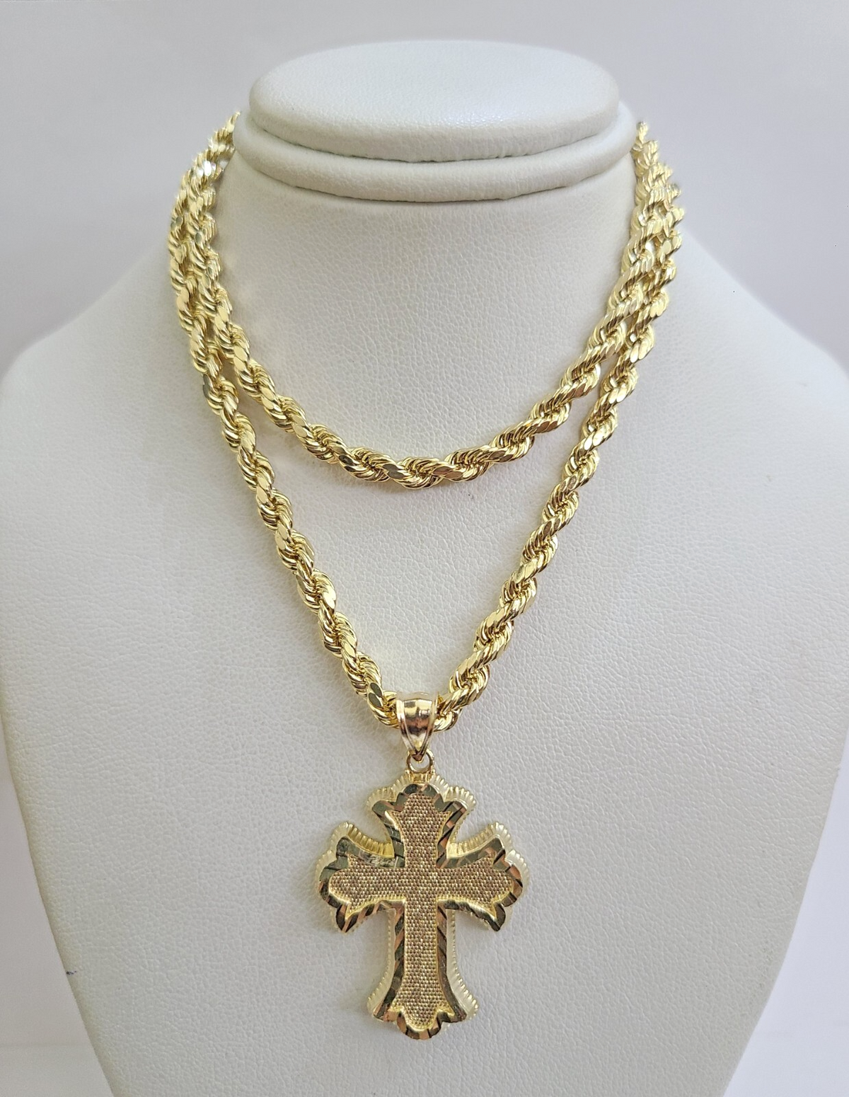REAL 10k Jesus Cross Charm Rope Chain Pendant 4mm Necklace Set 18"-28" in - 18 Inch (Short Length)