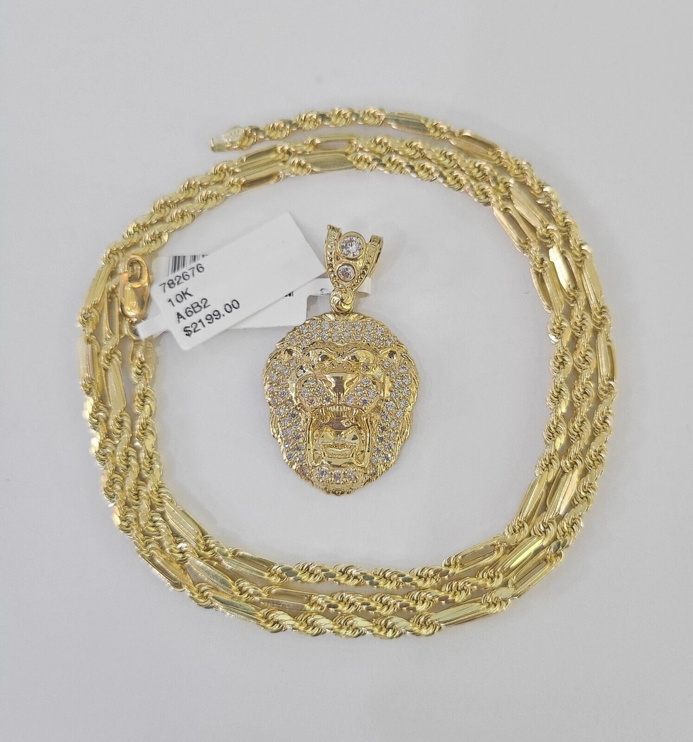 Real 10k Milano Rope Chain Roaring Lion Charm Necklace SET 3mm 18" 20" 22" 24" - 24 Inches