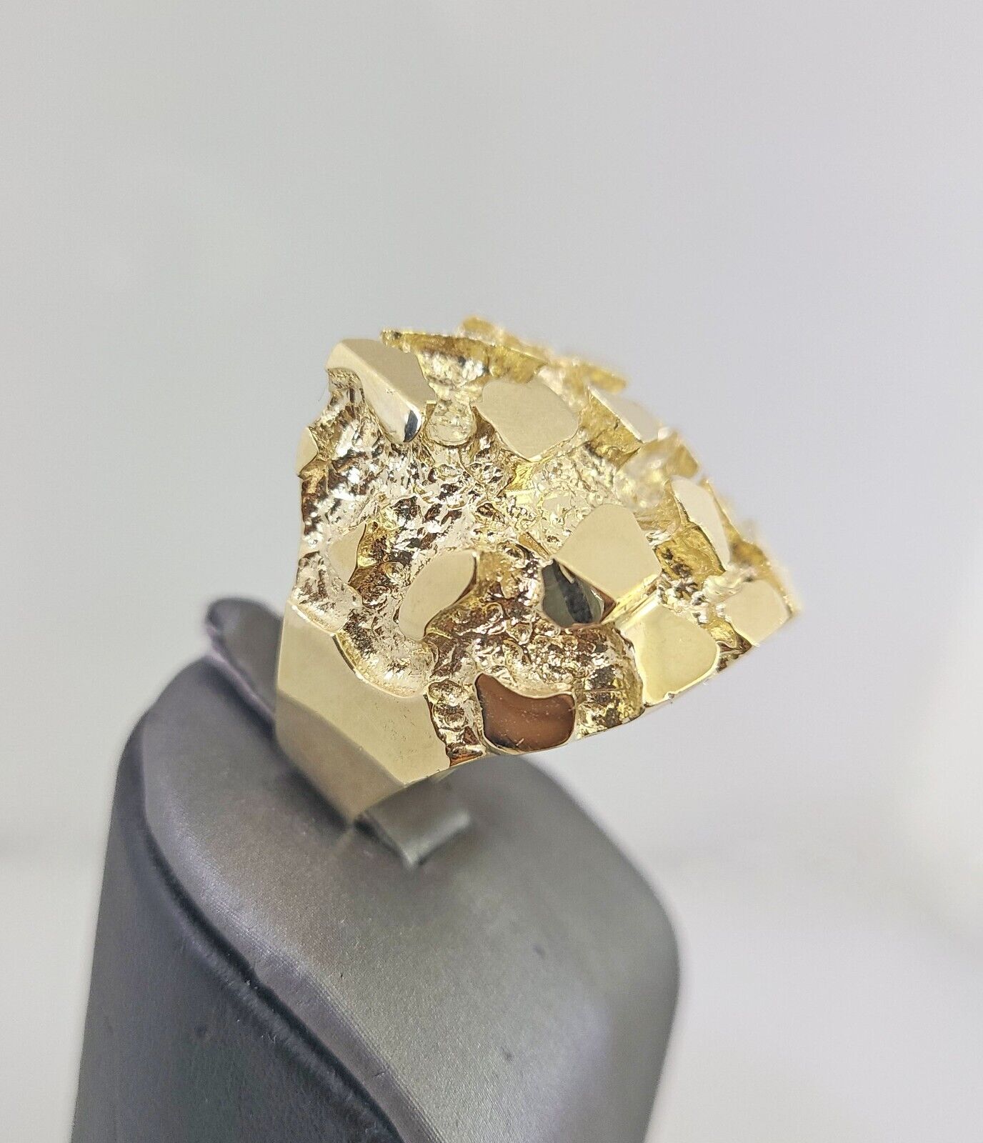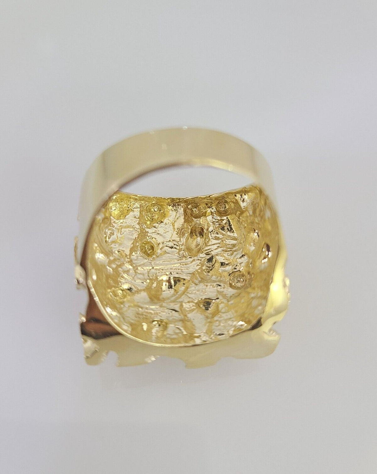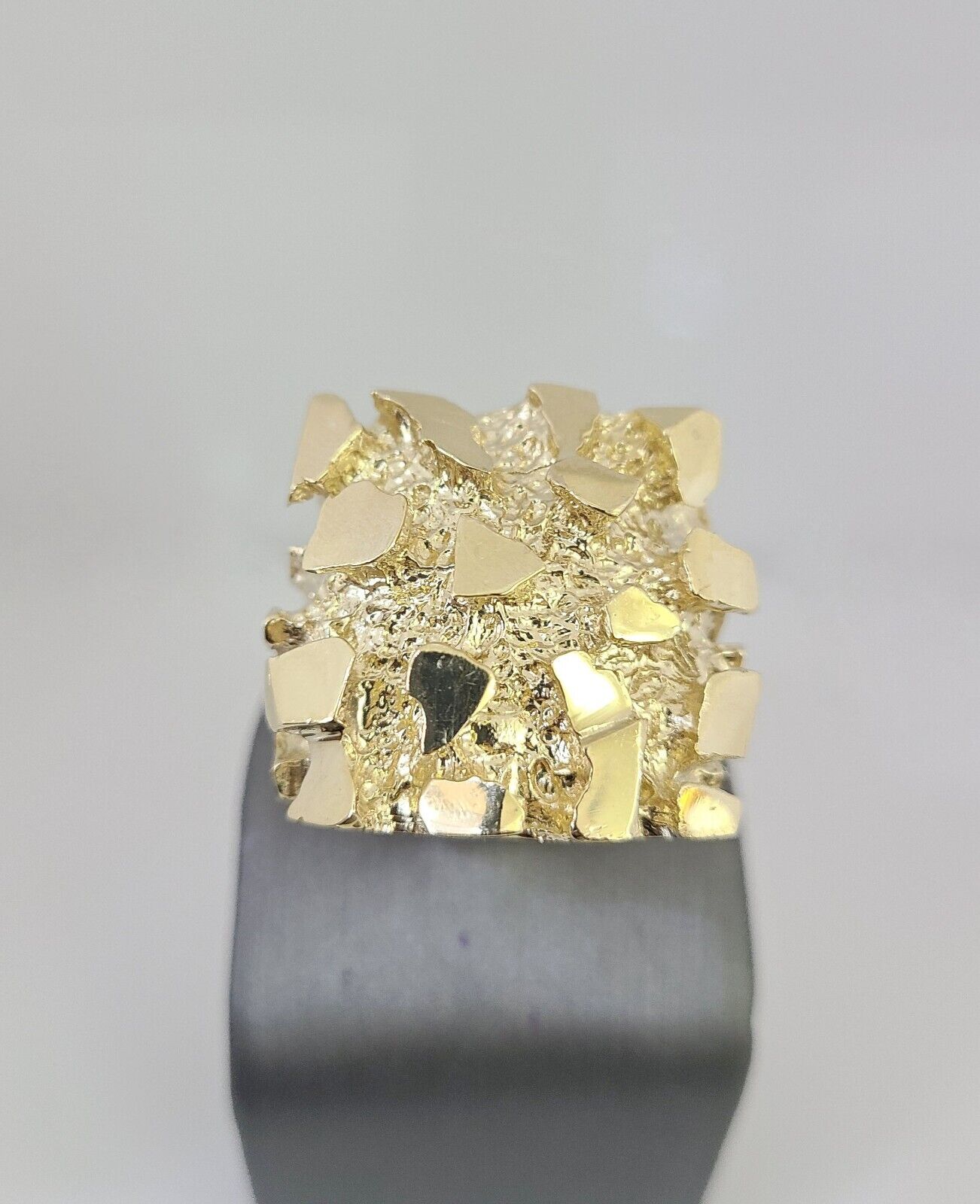 Real 10k Nugget Ring Yellow Gold Men Casual Square Ring 10kt All Sizes