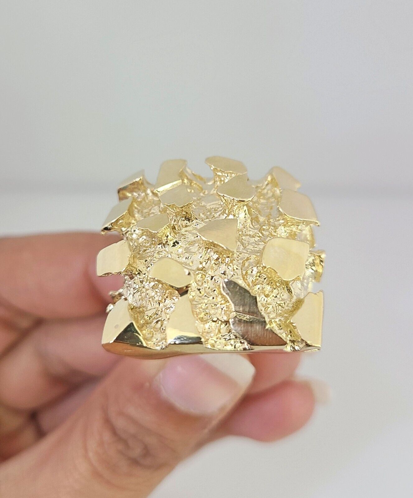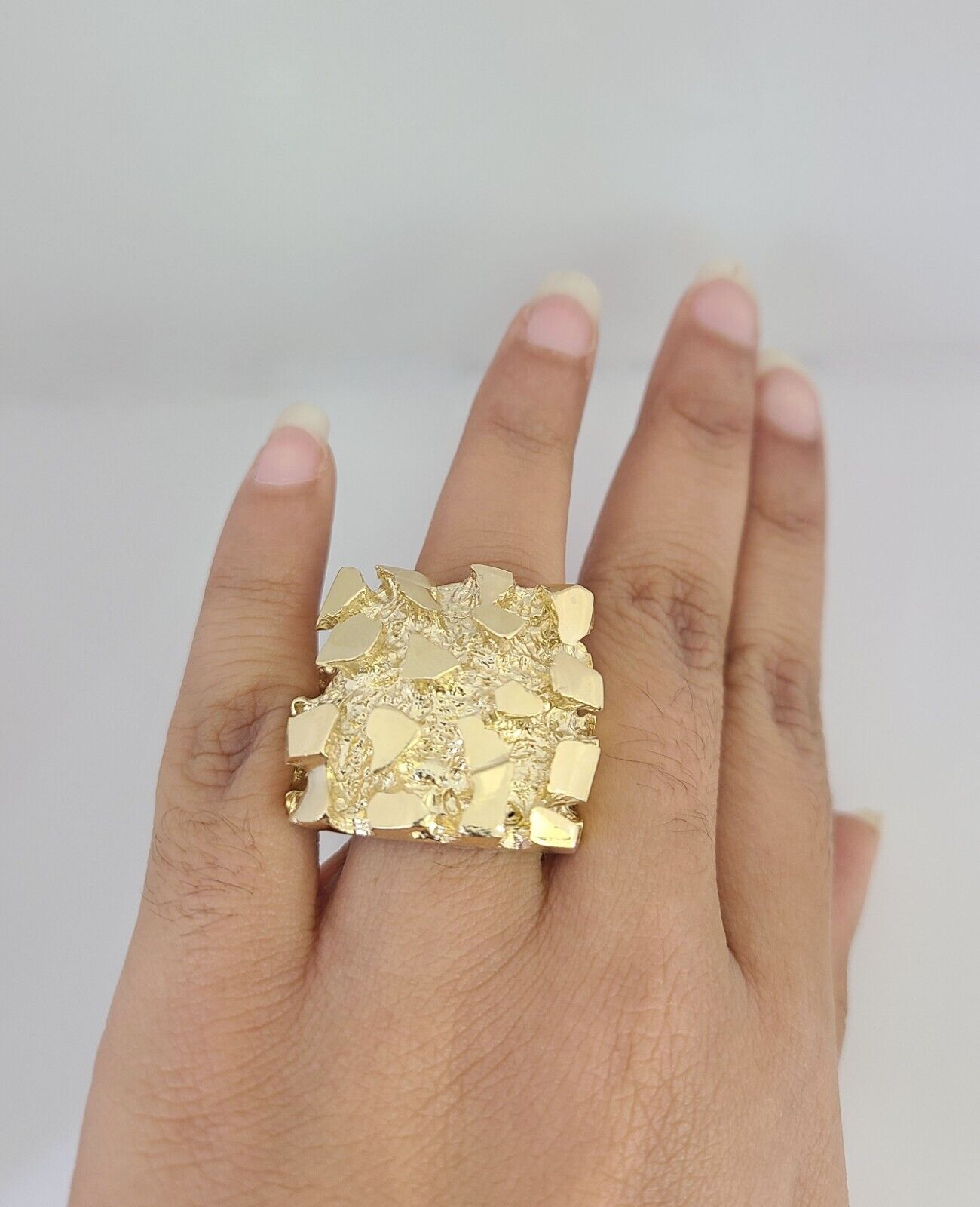 Real 10k Nugget Ring Yellow Gold Men Casual Square Ring 10kt All Sizes – Goldenlinq index
