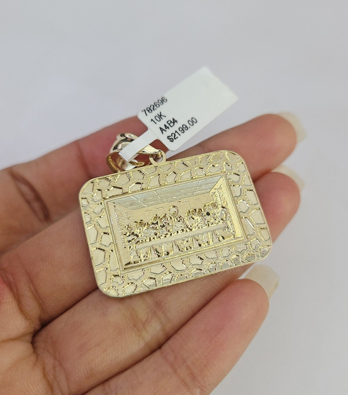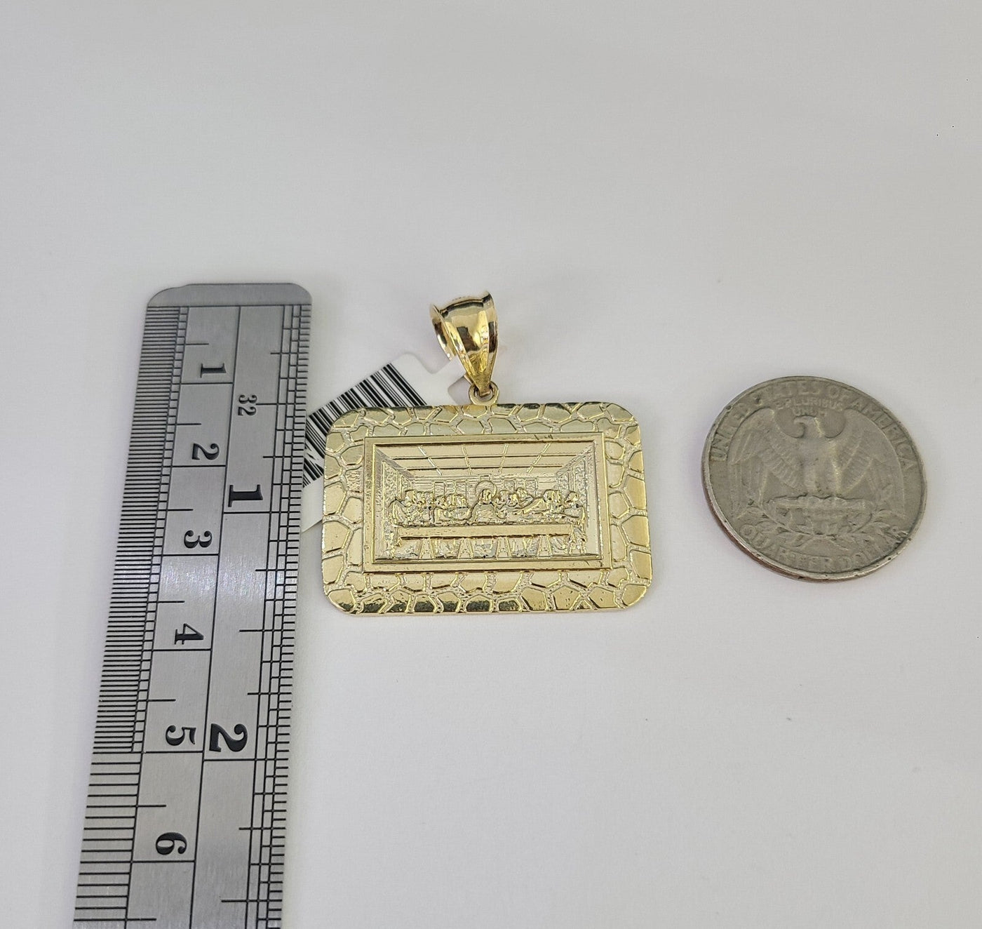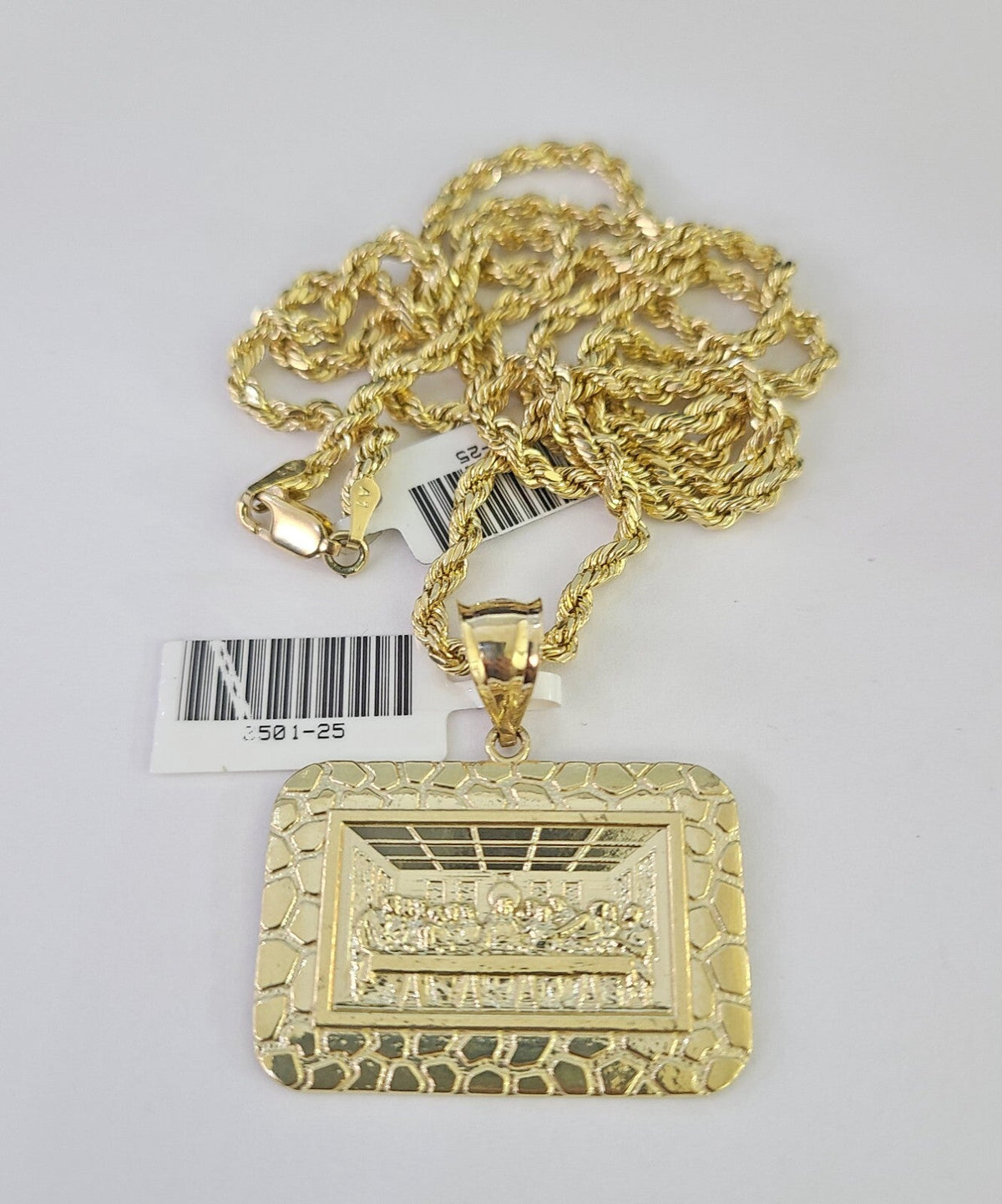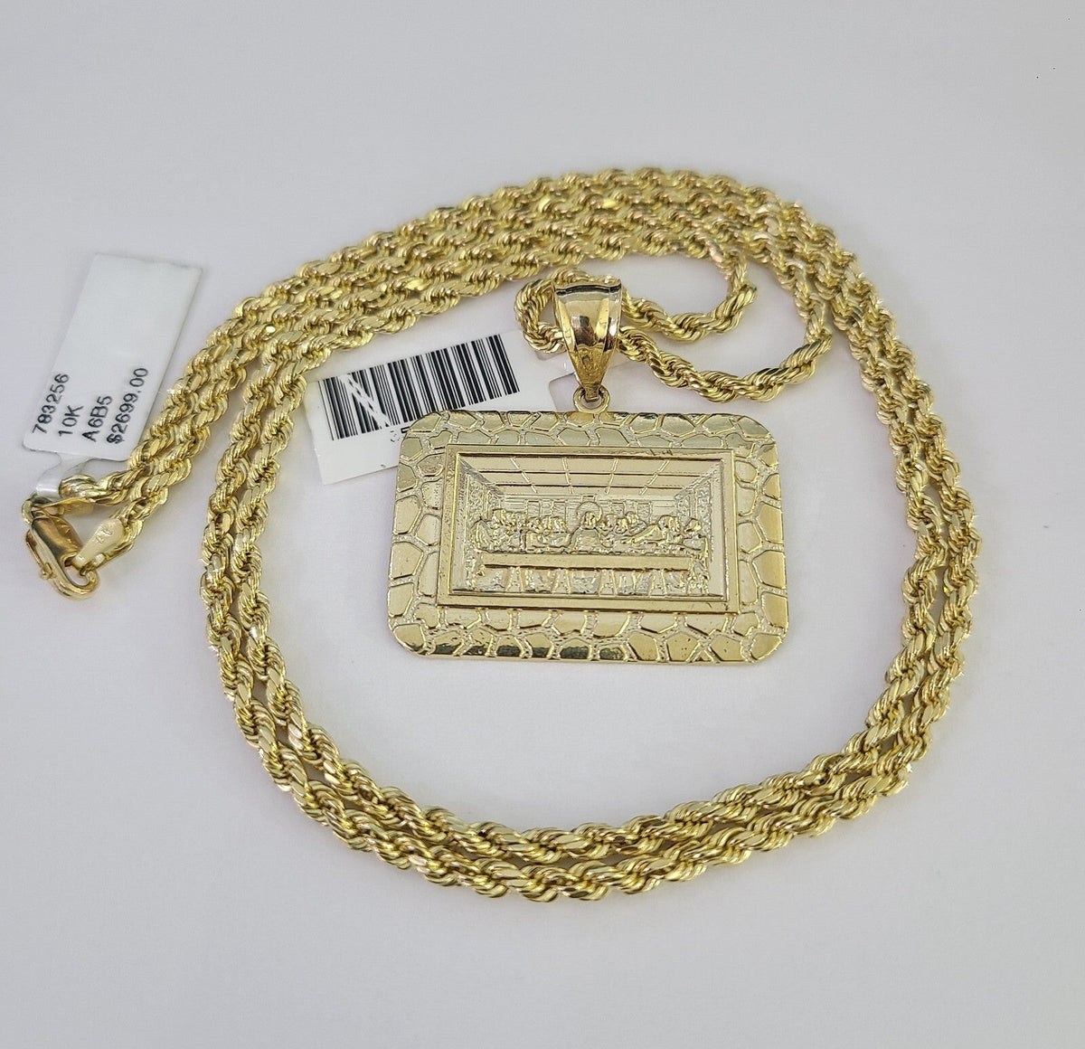 REAL 10k Rope Chain 3mm Last Supper Charm Pendant Necklace Set 18"-30" in - 18 Inch (Short Length)