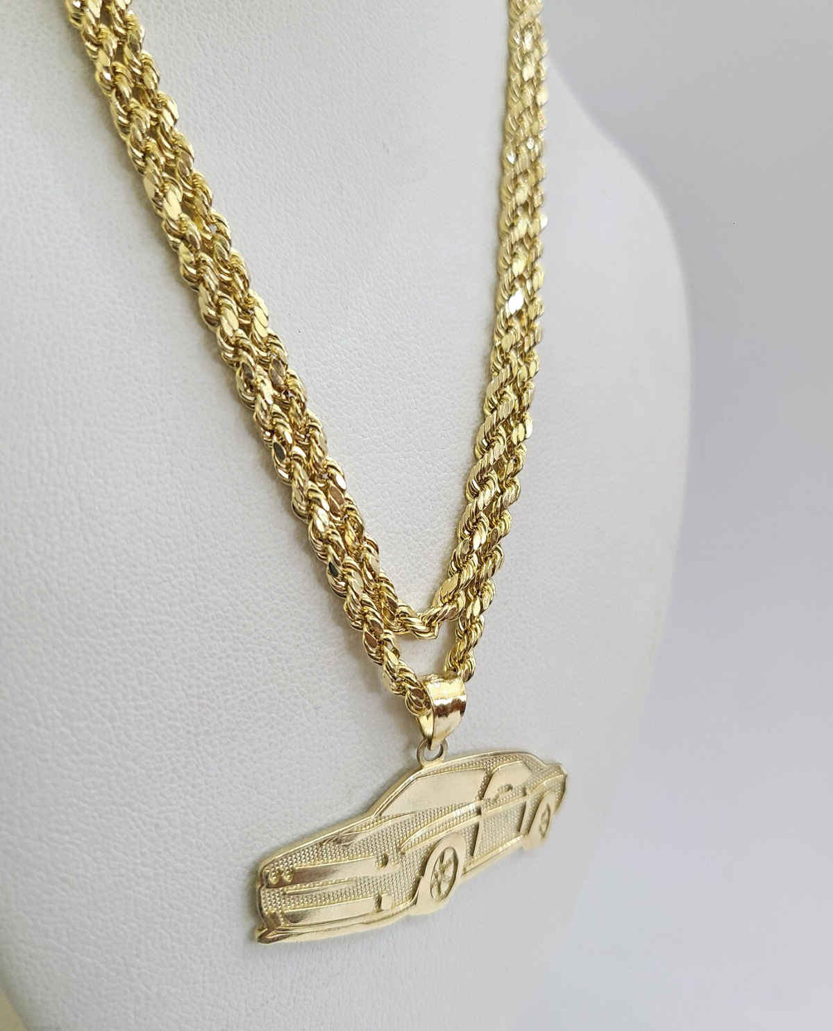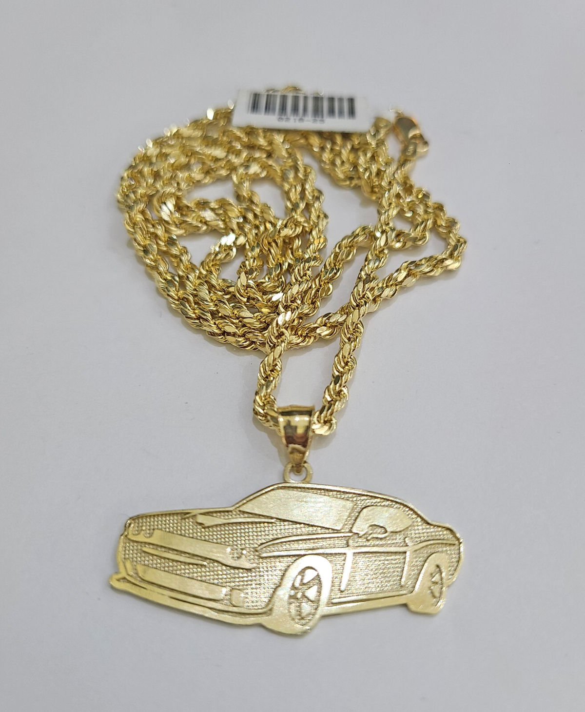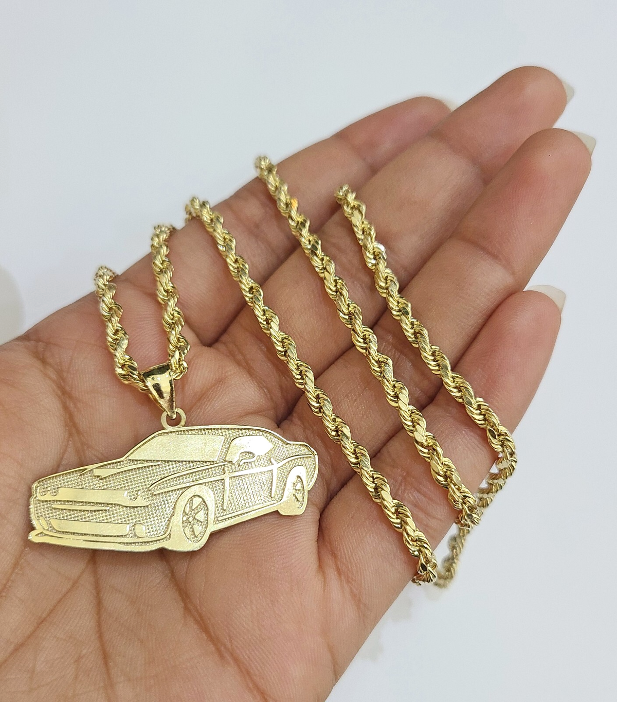 REAL 10k Rope Chain Car Challenger Charm Pendant 3mm Necklace Set 18"- – Goldenlinq index