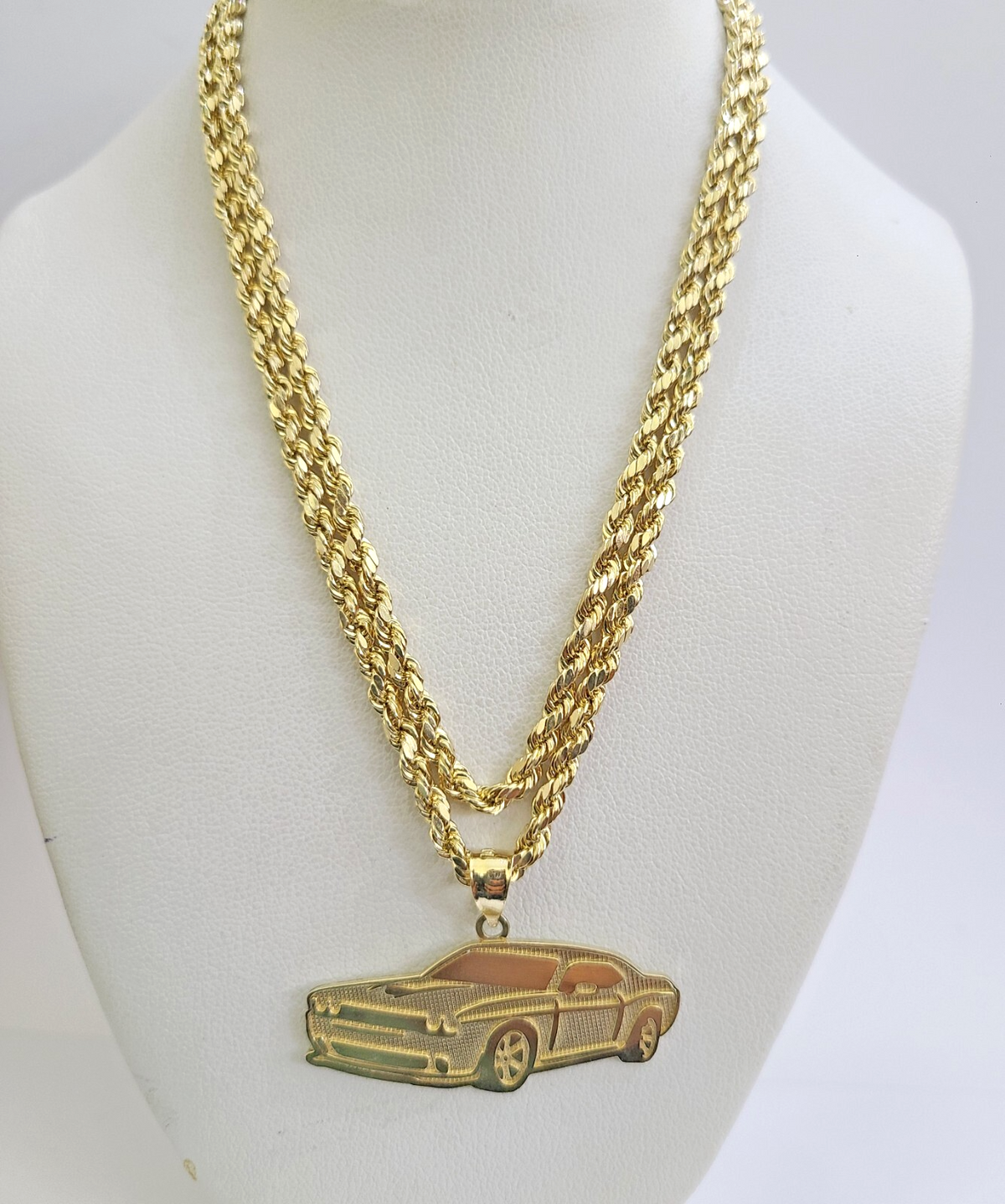 REAL 10k Rope Chain Car Challenger Charm Pendant 3mm Necklace Set 18"-28" in