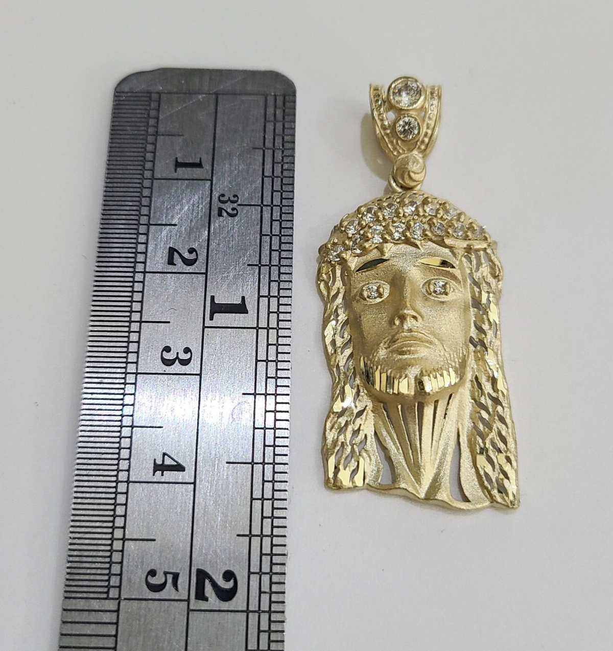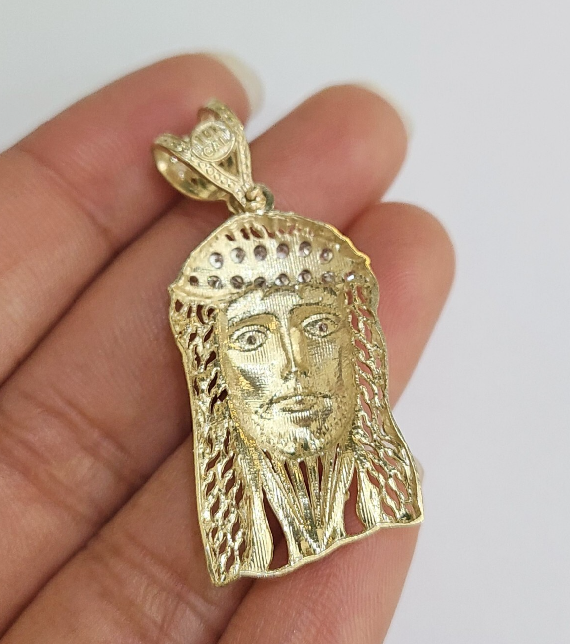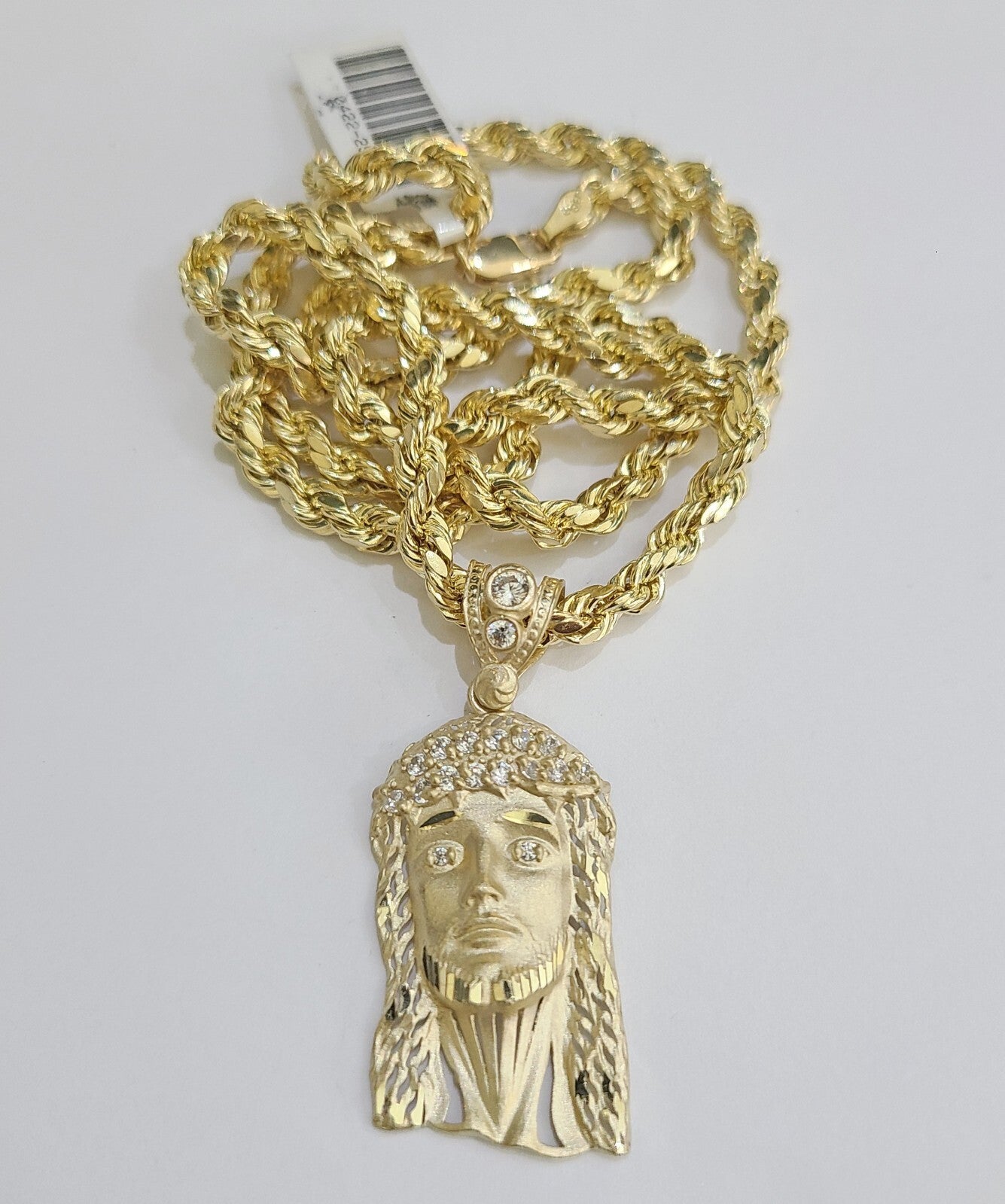 REAL 10k Rope Chain Jesus Head Charm Pendant 4mm Necklace Set 18"-28" in - 18 Inch (Short Length)