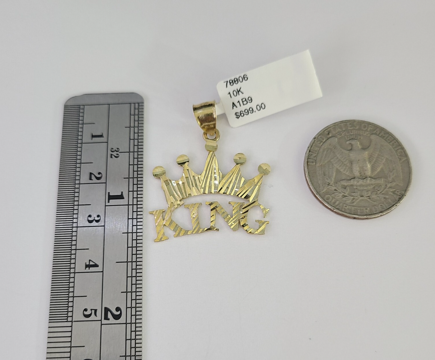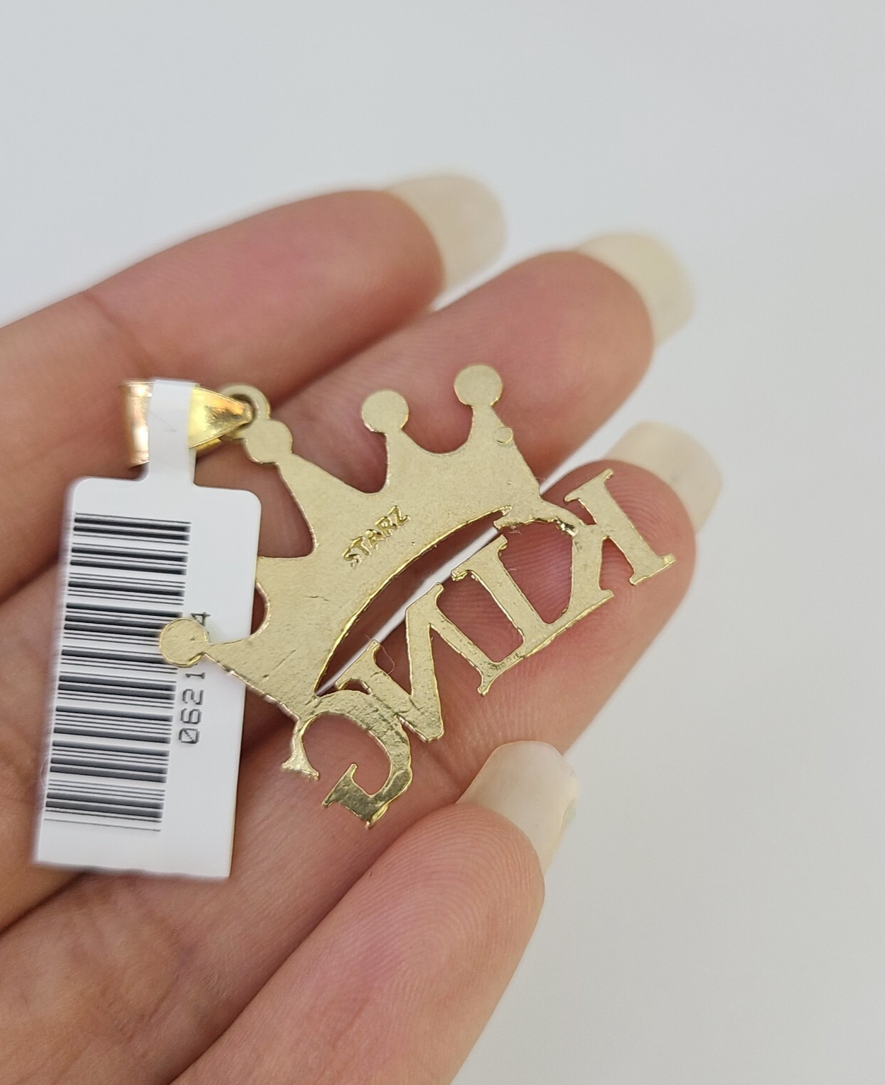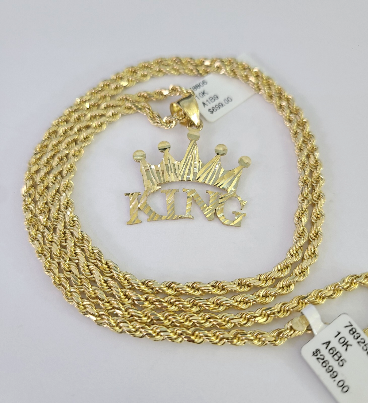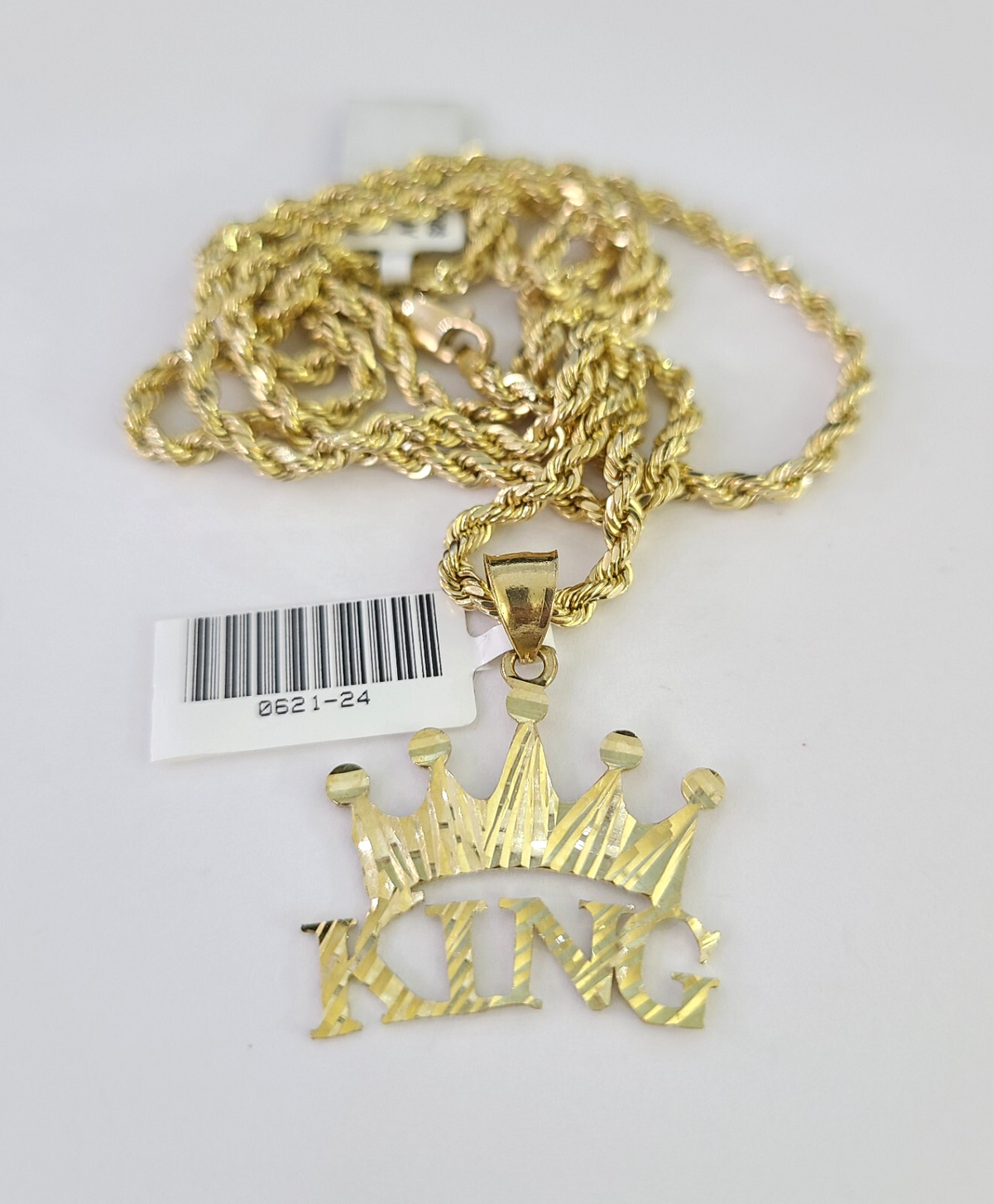 REAL 10k Rope Chain King Crown Charm Pendant 3mm Necklace Set 18"-30" in - 18 Inch (Short Length)