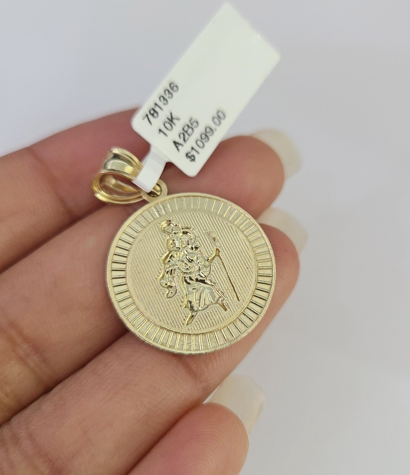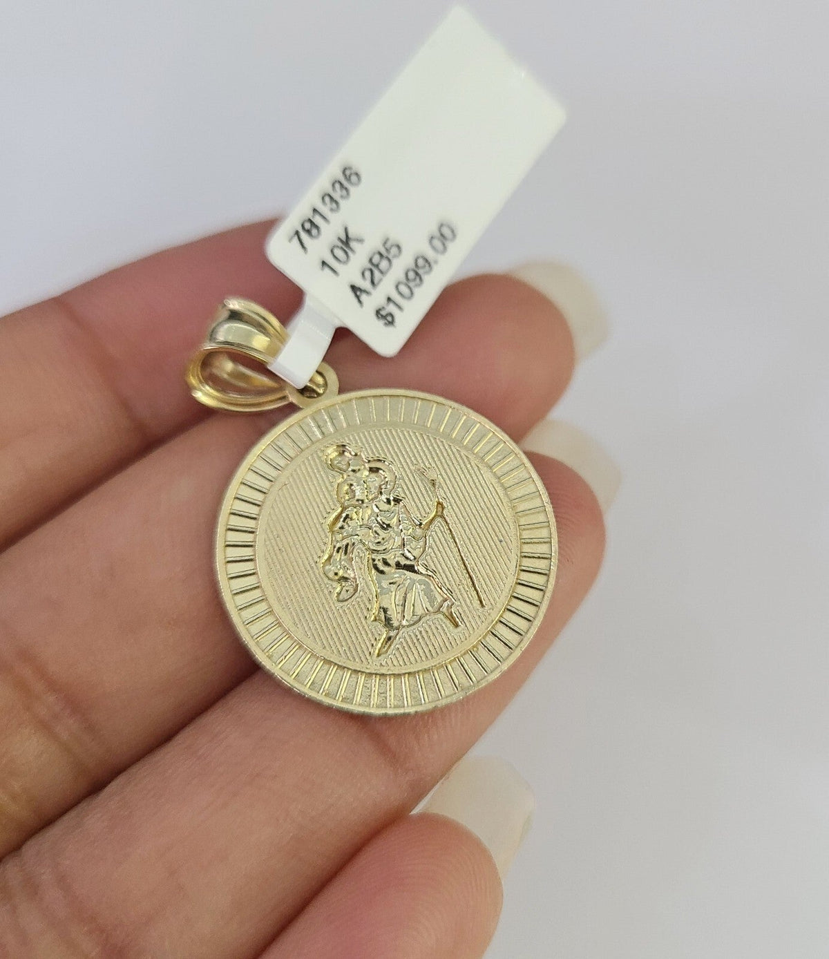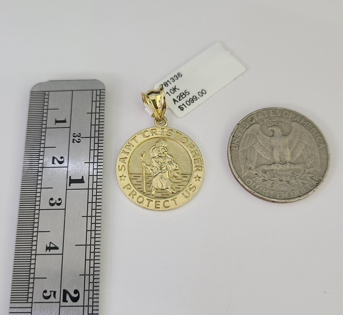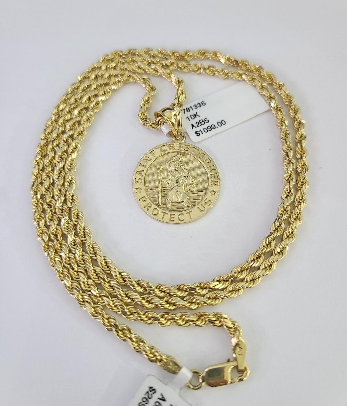 REAL 10k Rope Chain Saint Christopher Charm Pendant 3mm Necklace Set 18"-30" in - 18 Inch (Short Length)