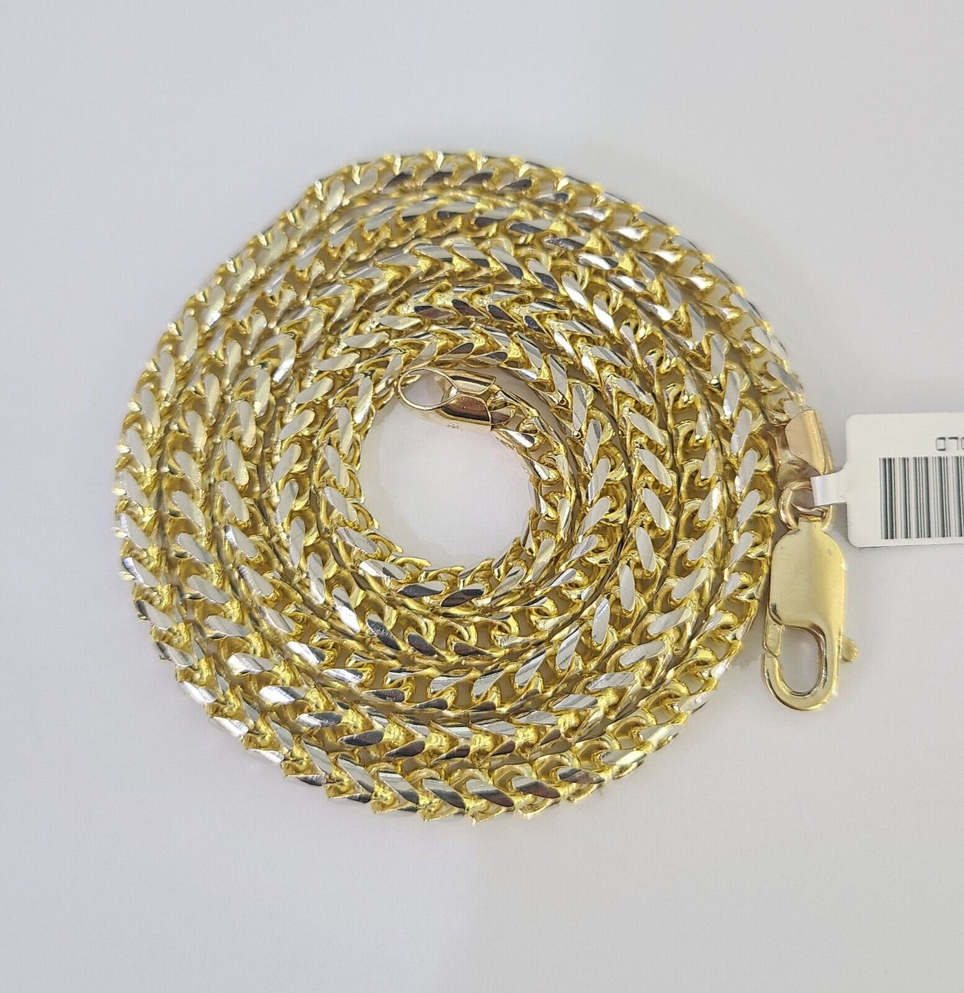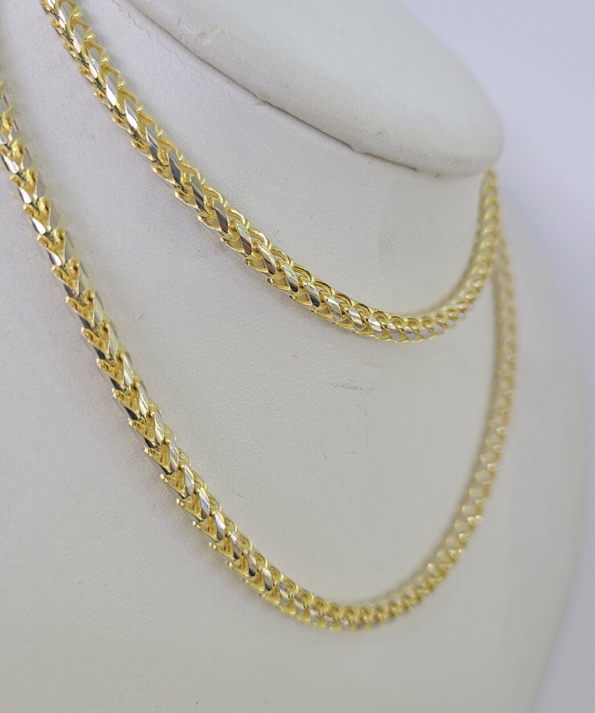 Real 10k Solid Palm Chain Yellow Gold 4mm 18"-26"Men Women Necklace Diamond Cut - 4mm / 18 Inches
